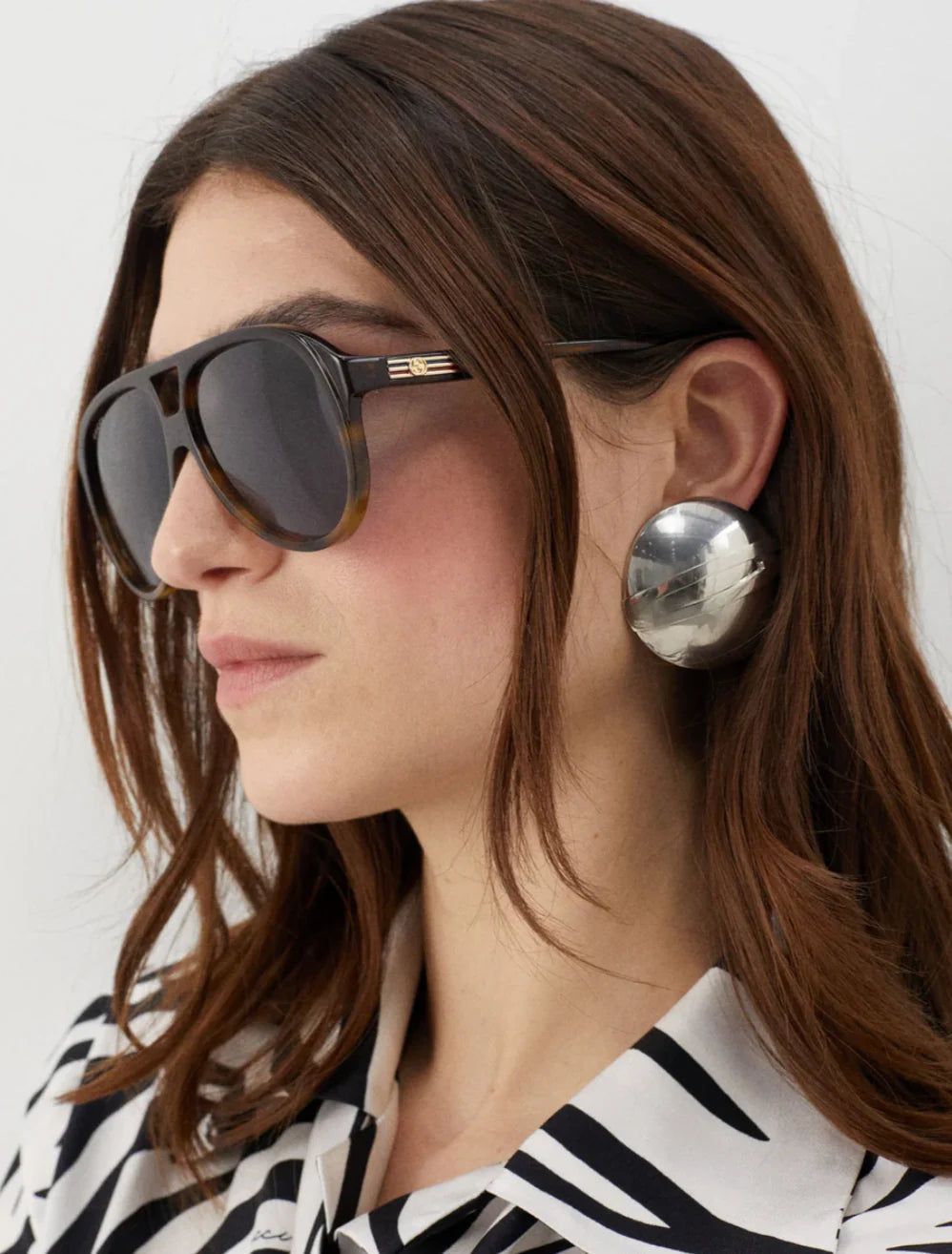 Descubrí los Gucci GG1286S 004 en color Havana, un modelo con diseño aviador que combina estilo clásico y moderno. Su estructura está fabricada en acetato reciclado, un material liviano y sustentable que asegura comodidad durante todo el día.
