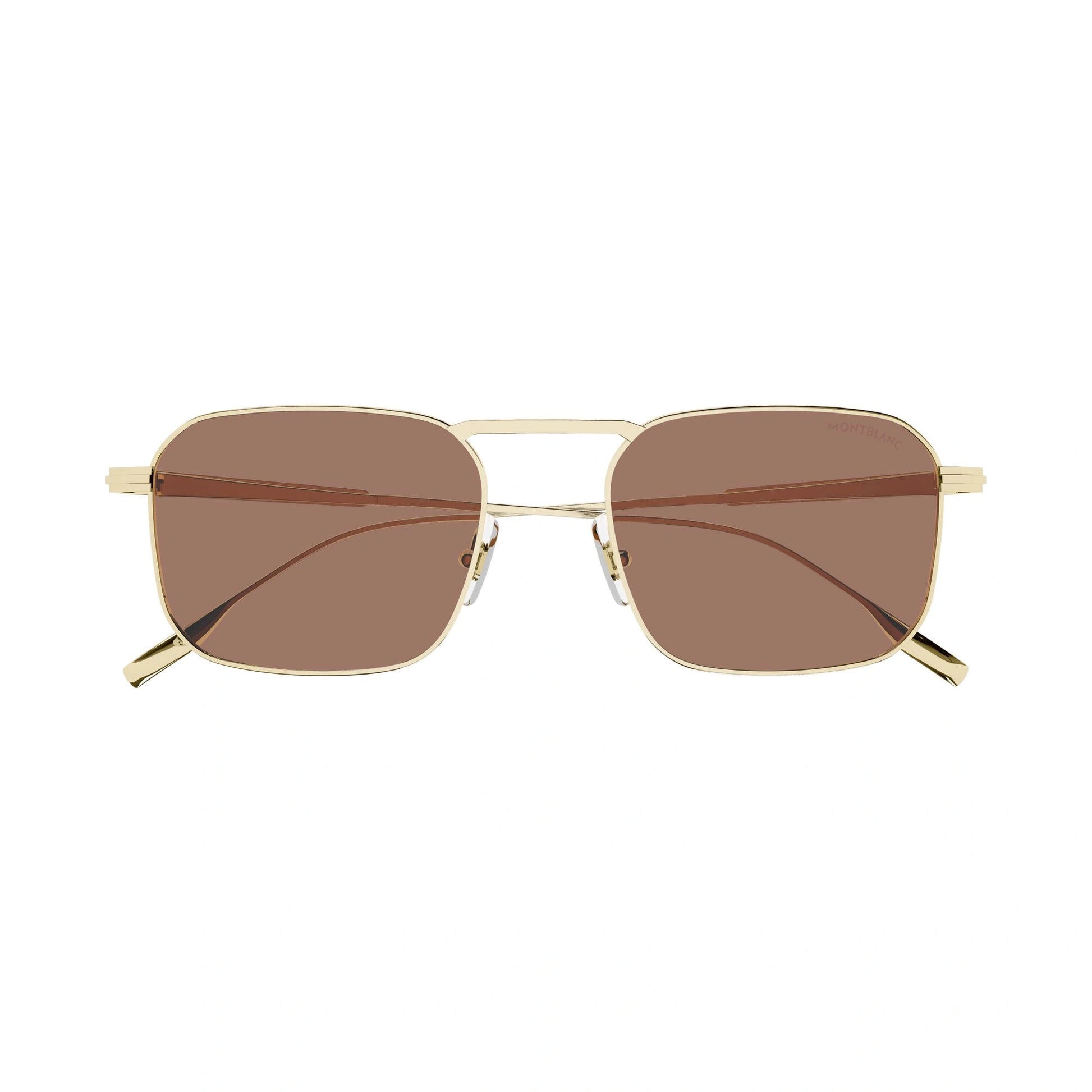 Montblanc MB0218S - 002 en elegante color oro con diseño rectangular-cuadrado. Forma parte de la nueva colección Montblanc 2025, fabricadas con materiales de alta calidad Made in Italy.